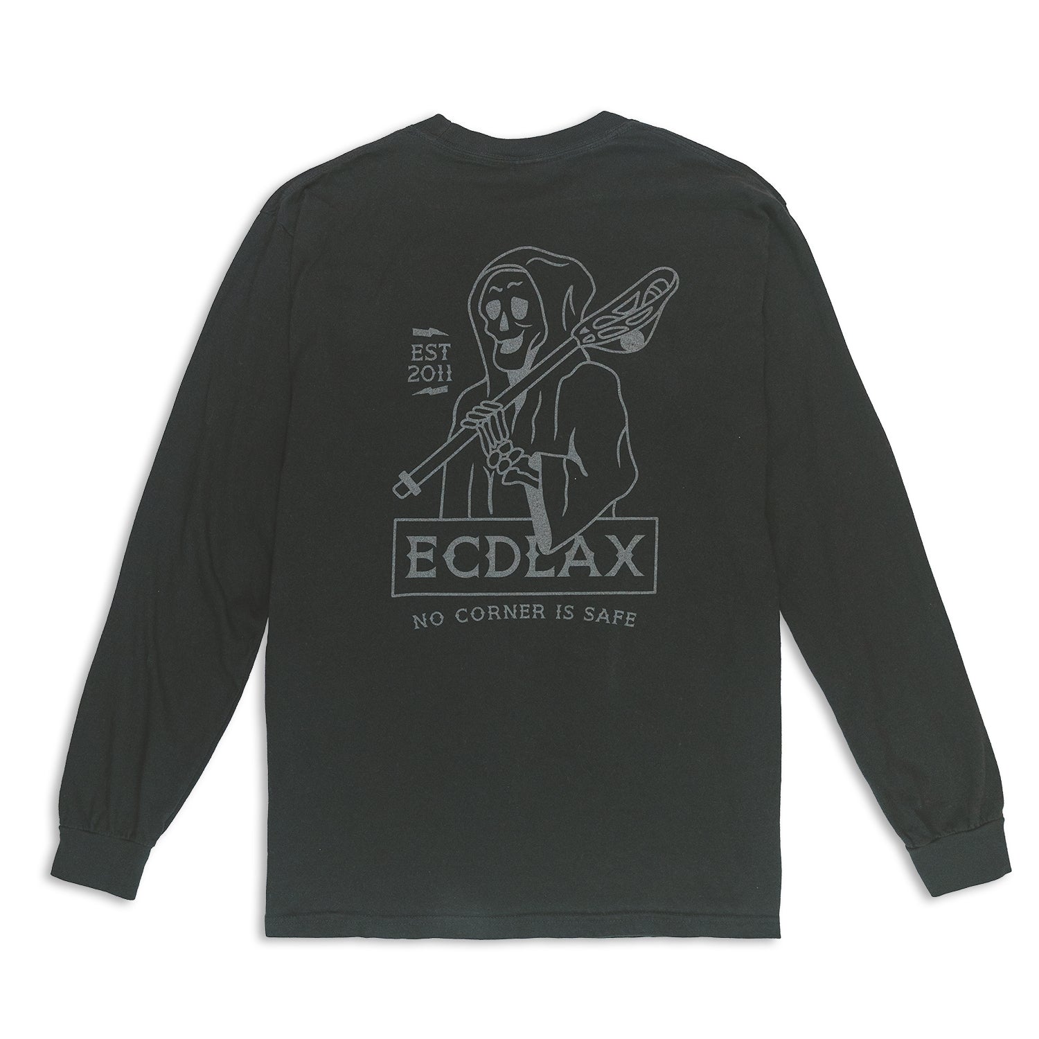 No corner is safe. This long sleeve features a hand drawn Reaper graphic, a clean color combo, and a perfect feel. This is a Comfort Color shirt.